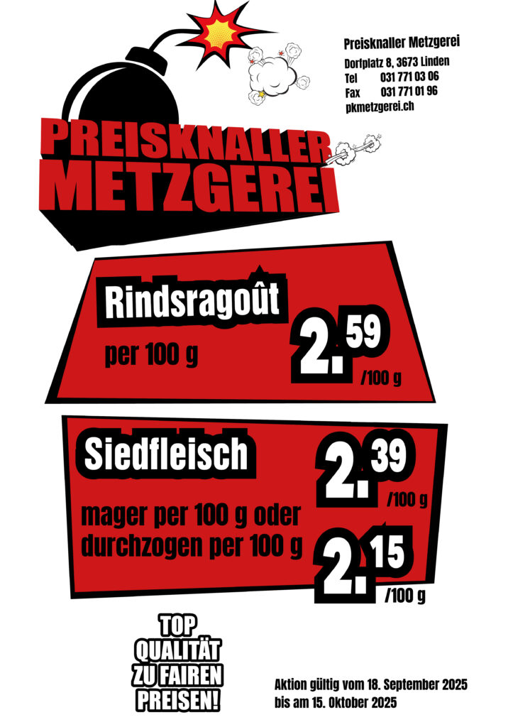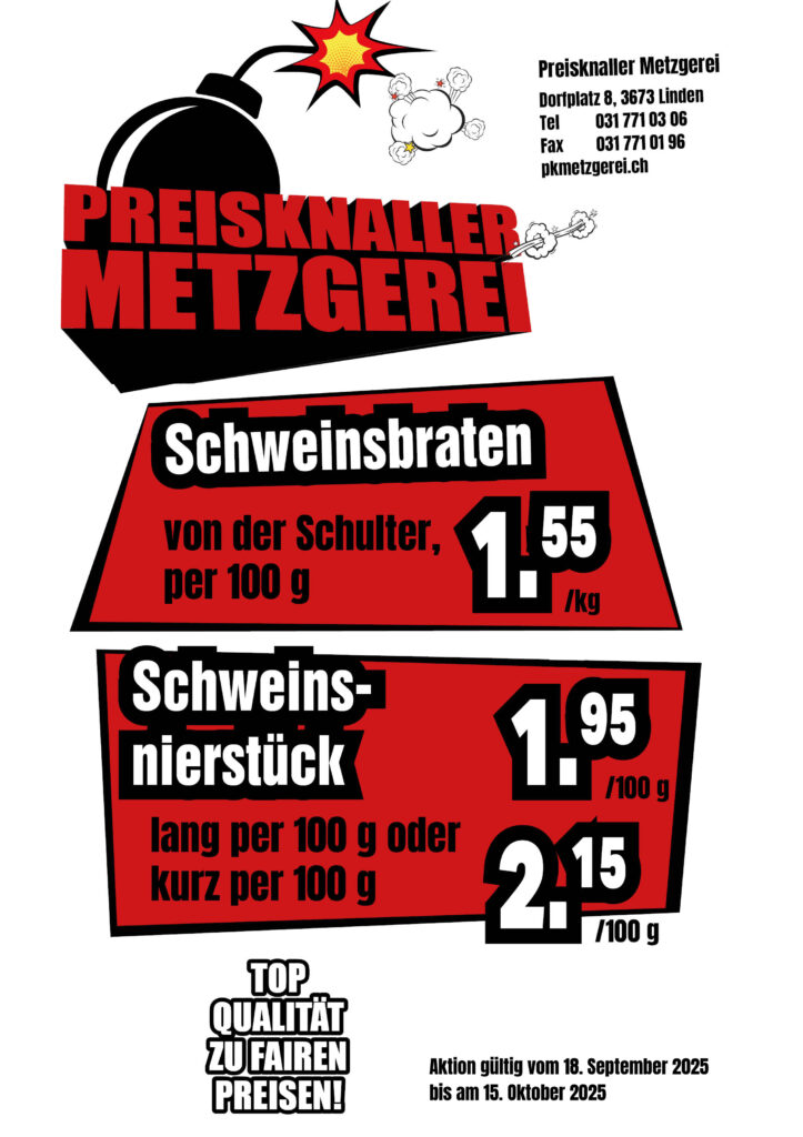 Aktuelles Angebot Preisknaller Metzgerei Linden